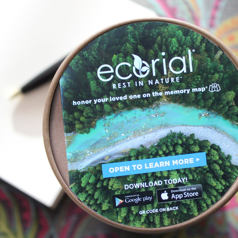 ECORIAL APP. Included with our urns is access to our proprietary Ecorial app, which lets you easily mark the spot of your loved one’s memorial and record the date, time and exact GPS coordinates. You can also upload video and photos and create an online memorial.